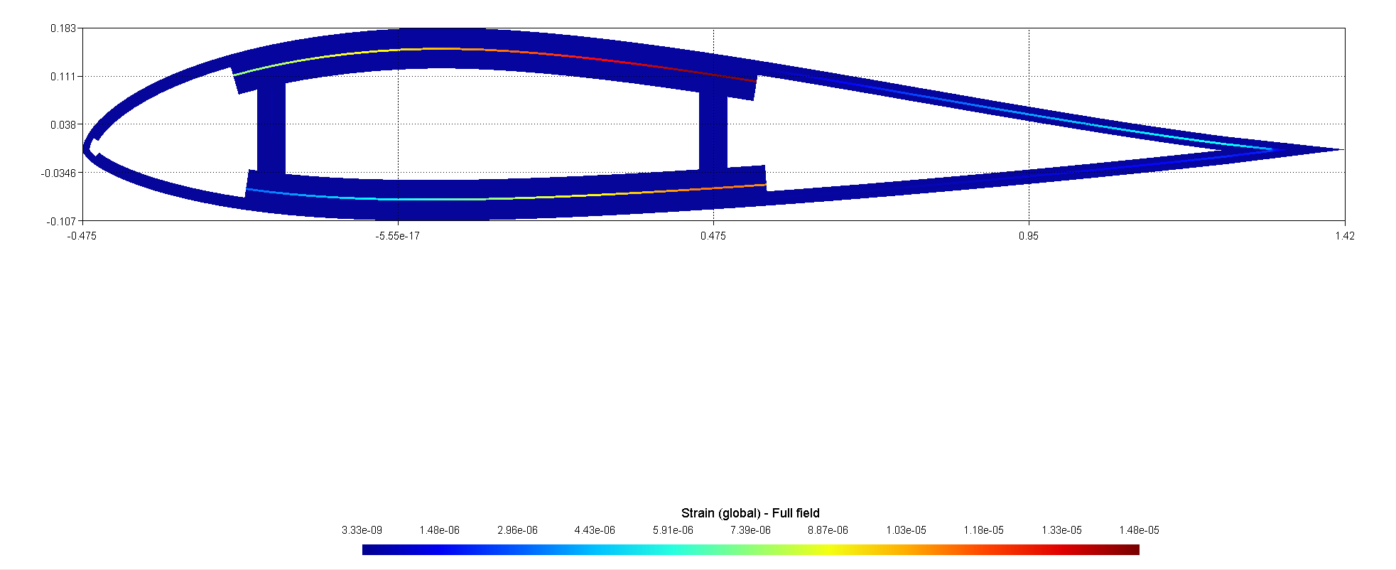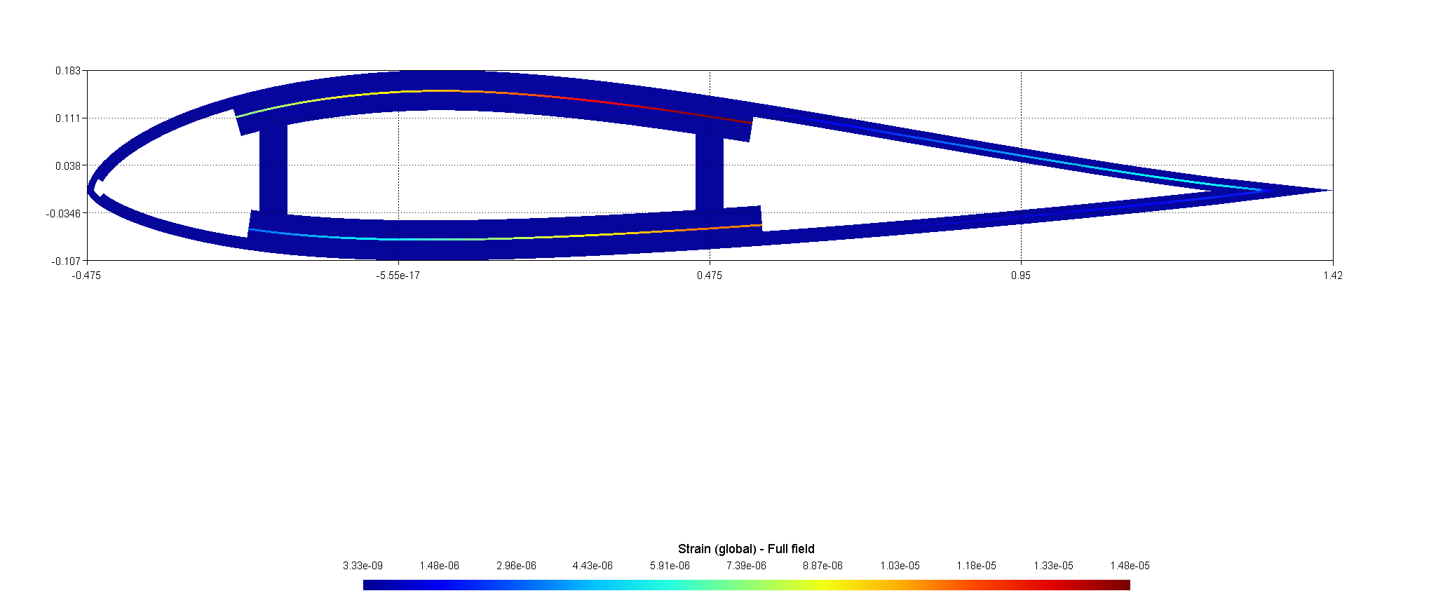 Good morning/afternoon, teachers. During the stress recovery process, I observed that the strain exhibits a significant gradient along the thickness direction of the airfoil, which normally should not occur.